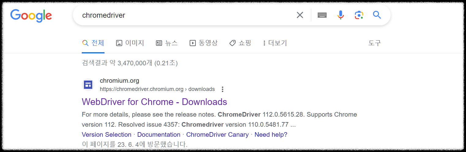 | 파이썬 셀레니움 크롤링 (2) : 크롬 브라우저 열기 (0) | 2023.06.06 |