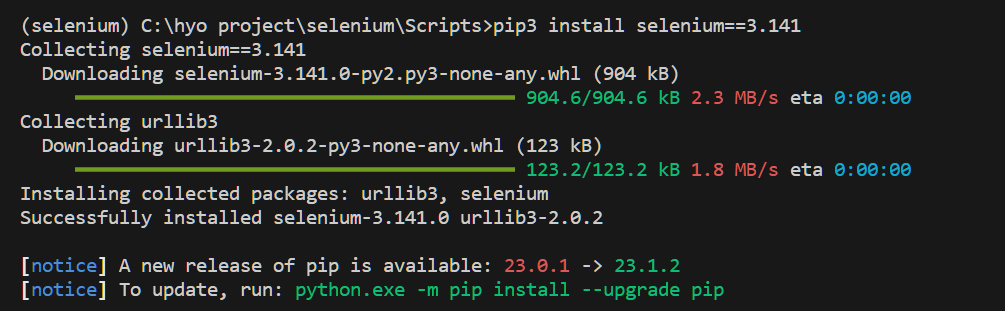 pip3 install selenium 명령을 통해 selenium을 설치합니다.